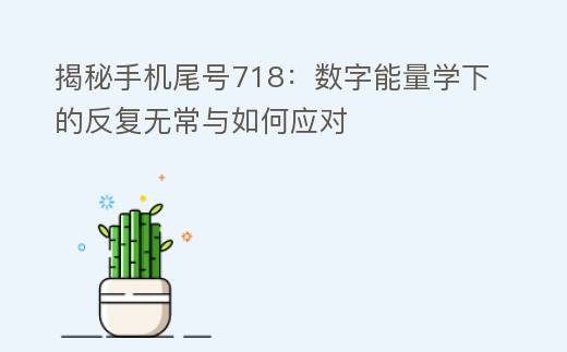 摘要:在數(shù)字能量學(xué)中,每一個數(shù)字都蘊含著特定的磁場能量,特別是某些數(shù)字的組合,能在無形中影響到使用者的性格和行為模式。尤其是手機尾號718,其數(shù)字能量被認為是“禍害加五鬼”的組合,給人帶來言辭反復(fù)無常、難以捉摸的表現(xiàn)。,揭秘手機尾號718:數(shù)字能量學(xué)下的反復(fù)無常與如何應(yīng)對