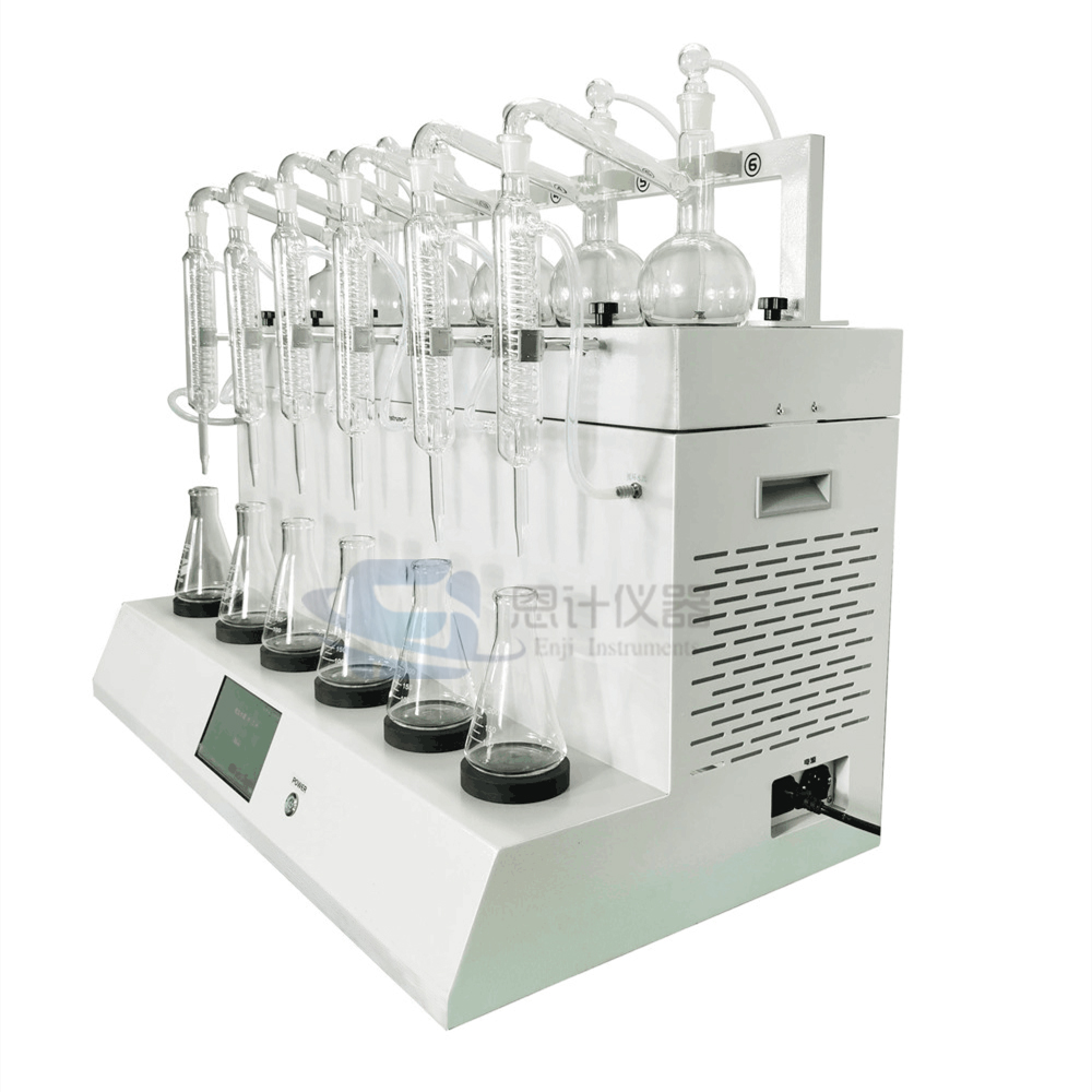 一體化萬用蒸餾儀(全玻璃蒸餾裝置)(EJ-ZLY-100S)根據實驗室樣品蒸餾預處理操作規程,集恒溫加熱、蒸餾終點控制、冷卻循環水于一體的新型智能蒸餾預處理設備。該儀器實現了精密控溫、均勻加熱、防止暴沸、高效回流,全部玻璃器皿密閉連接,滿足國標全玻的要求,廣泛應用于環保、疾控、水產、供排水、高校、科研院所、廠礦企業等各類化學實驗室需要蒸餾處理的場所。