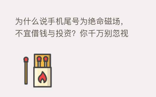 摘要:在數(shù)字能量學(xué)中,有一類數(shù)字被稱為“絕命磁場(chǎng)”。當(dāng)手機(jī)尾號(hào)為 12/21、69/96、48/84、307/703、690/960、840/480…… 等數(shù)字組合時(shí),便屬于典型的絕命能量。,為什么說(shuō)手機(jī)尾號(hào)為絕命磁場(chǎng),不宜借錢(qián)與投資?你千萬(wàn)別忽視!